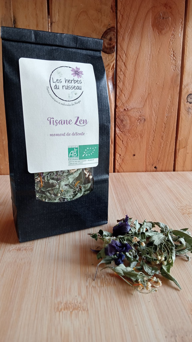 Composition: Basilic sacré*, aubépine*, verveine citronnée*, chrysanthème comestible*, marjolaine*, mauve*, souci*